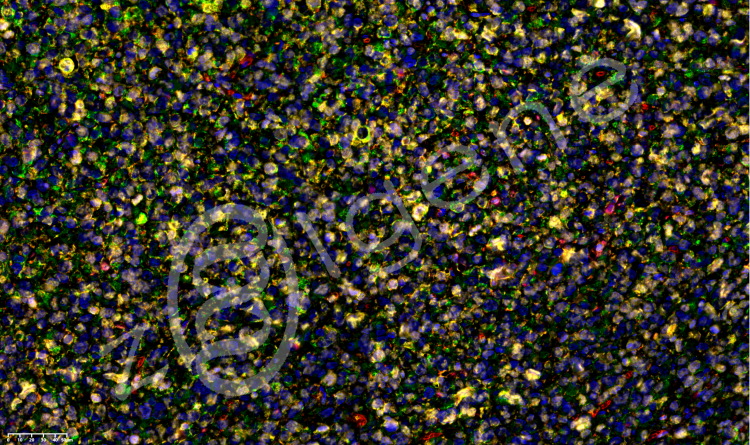 酪酰胺信号放大(TSA,Tyramide signal amplification)技术是一类利用辣根过氧化酶(HRP)对靶蛋白或核酸进行高密度原位标记的酶学检测方法,能够实现信号放大,同源抗体单标、双标、三标、四标、五标等多重功能。荧光标记的酪胺分子在H2O2环境下被二抗标记的HRP催化激活,产生大量的酶促反应产物,使荧光素在抗原-抗体结合部位与组织周围的蛋白残基共价结合,形成大量的荧光素信号,并实现信号放大。运用热处理或微波处理洗脱一抗和二抗并同时能保留与组织抗原共价结合的荧光素。因此可以通过使用不同的偶联染料多次循环实验对多种蛋白抗原的荧光标记,实现一张组织切片上多个蛋白的共染色。