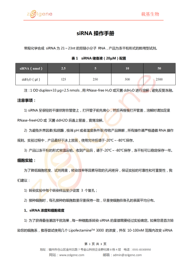 ▶ 服务介绍 siRNA被广泛用于基因功能研究和基因治疗,包括基因敲低实验和治疗肿瘤或病毒感染等疾病。miRNA在基础研究和临床应用中都有广泛用途。在癌症研究中,miRNA可作为生物标志物用于疾病诊断和预后评估,也可作为潜在的治疗靶点。 ▶ 载基RNA产品优势